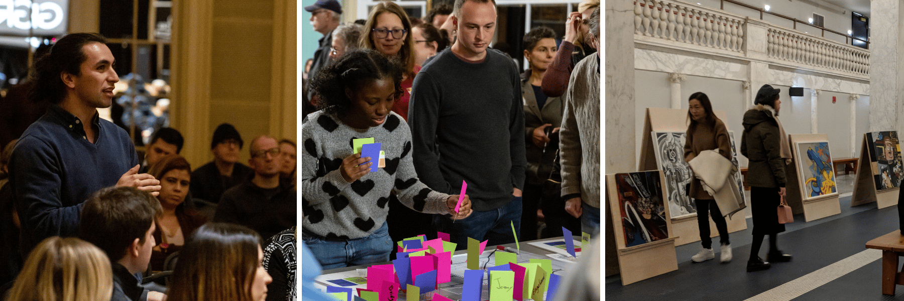 Artist Tonika Johnson explained the background of her Folded Map Project: “I saw the gradient of change in Chicago neighborhoods on my daily commute to school...Chicago's segregation made such an impression on me I started to think in terms of addresses.” After a series of interactive art activities involving sticky notes, photography, placing pins on a giant printed map of Chicago, and conversation, Johnson gave audiences this call to action: “Get to know people from different neighborhoods, talk to them, and visit them.”